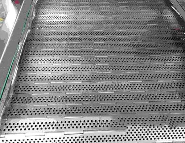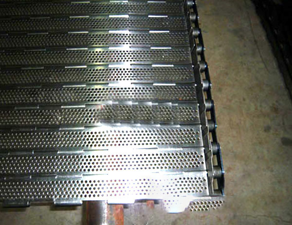 瀝水鏈板機(jī)也叫瀝水鏈板輸送機(jī),是瀝水輸送機(jī)的一種,該輸送機(jī)適合長距離輸送,可以通過多列鏈板并行,使鏈板輸送機(jī)做的很寬并形成差速,利用多列鏈板的速度差使多列輸送在無擠壓的情況下變?yōu)閱瘟休斔停瑥亩鴿M足飲料貼標(biāo)、灌裝、清洗等設(shè)備的單列輸送的要求,我們可以將兩條鏈板輸送機(jī)的頭尾部做成重疊式的混合鏈?zhǔn)沟闷?罐)體處于動態(tài)過度狀態(tài),使輸送線上不滯留物料,可以滿足空瓶以及實瓶壓力和無壓力輸送。