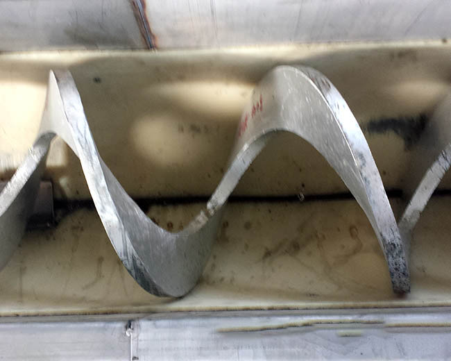 污泥輸送機是旋轉(zhuǎn)的螺旋葉片將物料推移而進行螺旋輸送機輸送,使物料不與螺旋輸送機葉片一起旋轉(zhuǎn)的力是物料自身重量和螺旋輸送機機殼對物料的摩擦阻力。螺旋輸送機旋轉(zhuǎn)軸上焊的螺旋葉片,葉片的面型根據(jù)輸送物料的不同有實體面型、帶式面型、葉片面型等型式。螺旋輸送機的螺旋軸在物料運動方向的終端有止推軸承以隨物料給螺旋的軸向反力,在機長較長時,應(yīng)加中間吊掛軸承。