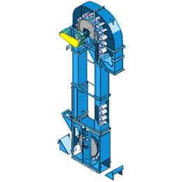 GD型鋼絲繩芯膠帶斗式提升機牽引構(gòu)件采用高強度鋼絲繩芯橡膠帶,克服了鏈條嚙合驅(qū)動產(chǎn)生動載荷,較鏈條更輕便,工作平穩(wěn),能以更快的運動速度達到更高的生產(chǎn)率,在同樣的生產(chǎn)條件下,膠帶因其工作速度高和自重較輕,可使物料線荷載和牽引構(gòu)件的線載荷減少,從而減少整機的尺寸和自重。