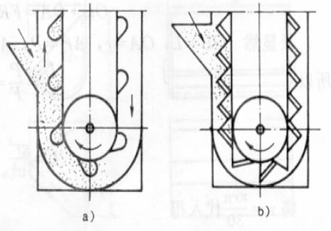 淺料斗:輸送潮濕、易結(jié)塊、難拋出的物料。如濕沙、濕煤等。